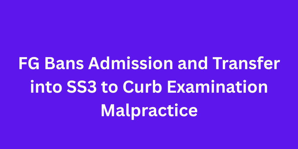 The Federal Government has announced a nationwide ban on the admission and transfer of students into Senior Secondary School Three (SS3) as part of efforts to tackle rising cases of examination malpractice in Nigeria.